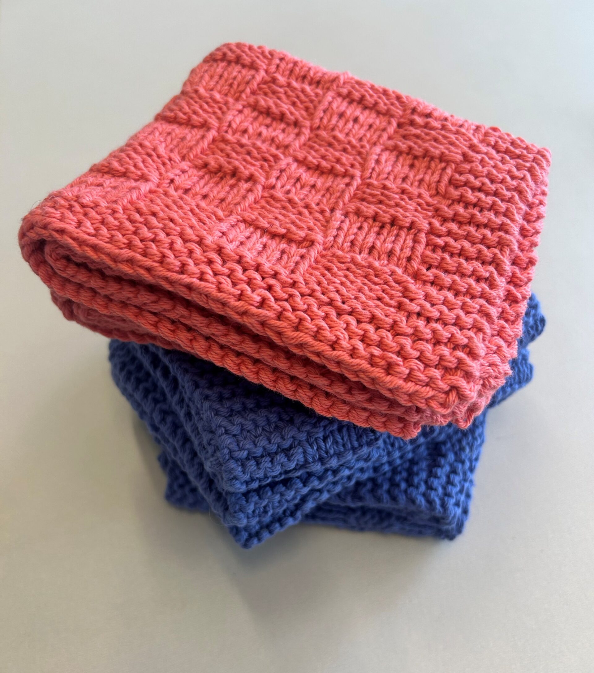 Flotte, hjemmestrikkede vaskeklude Uspec. Farver og mønstre. Ca. 25 x 25 cm.