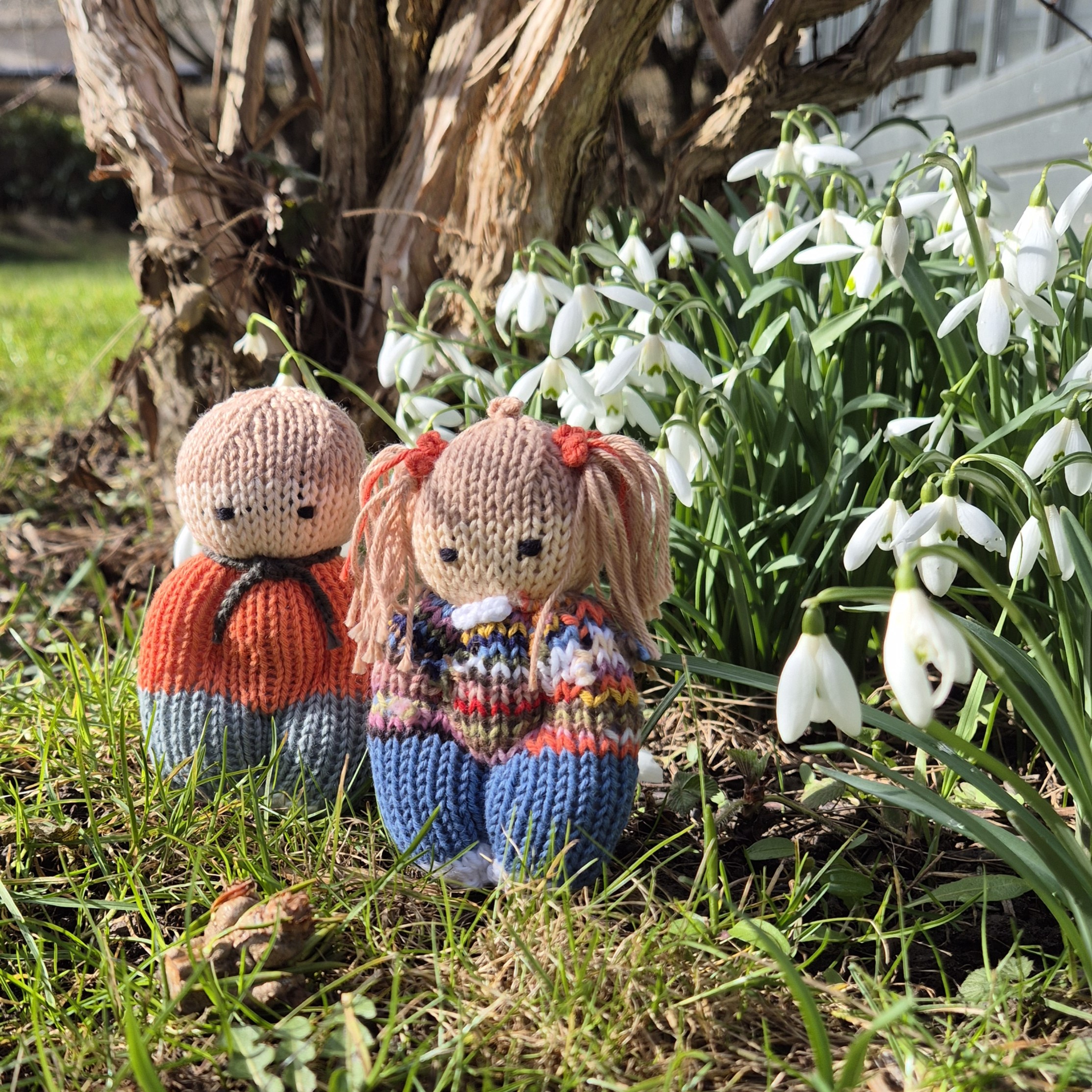 Vidunderlige små dukker strikket af Mette Bach. Dukkerne hedder Små Venner, og ikke to er ens.